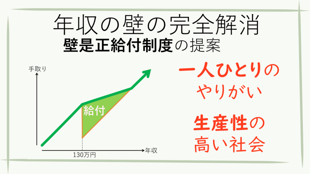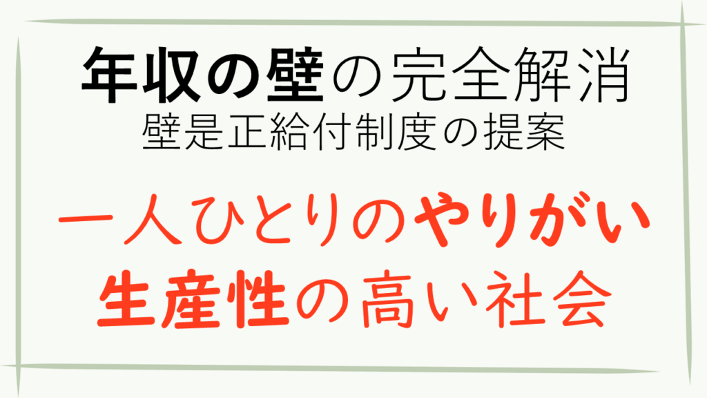 一人ひとりがやりがいを取り戻し、生産性の高い社会を実現するために、壁是正給付制度をご提案します。