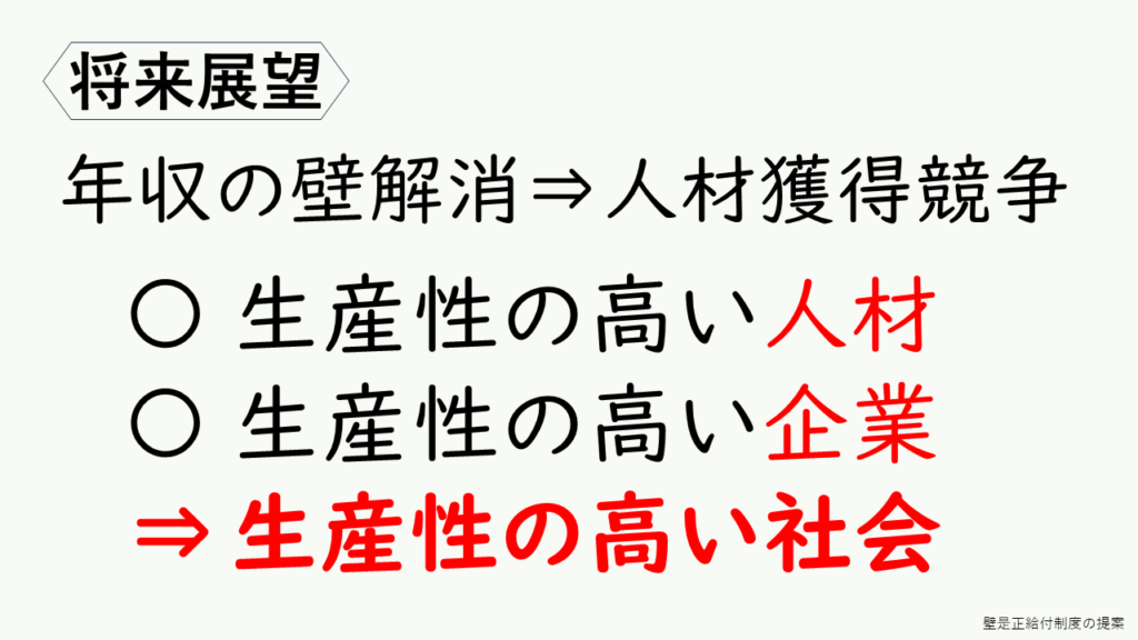そこでは、生産性の高い人材が求められ、生産性の高い企業が勝ち残ります。 このようにして、生産性の高い社会が実現されていきます。