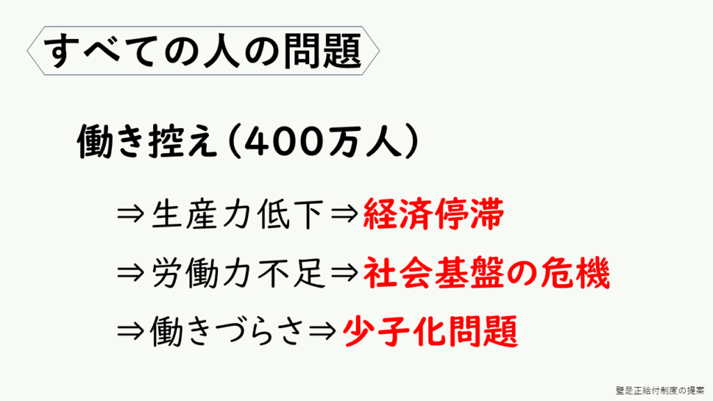 「働き控え」が、生産力の低下を招き、経済停滞の一因となっています。