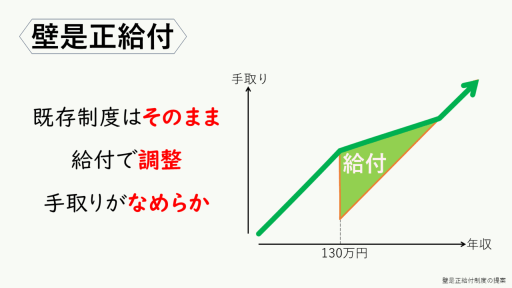 そこで、既存の制度はそのままに、給付金でこの壁を是正する制度をご提案します。